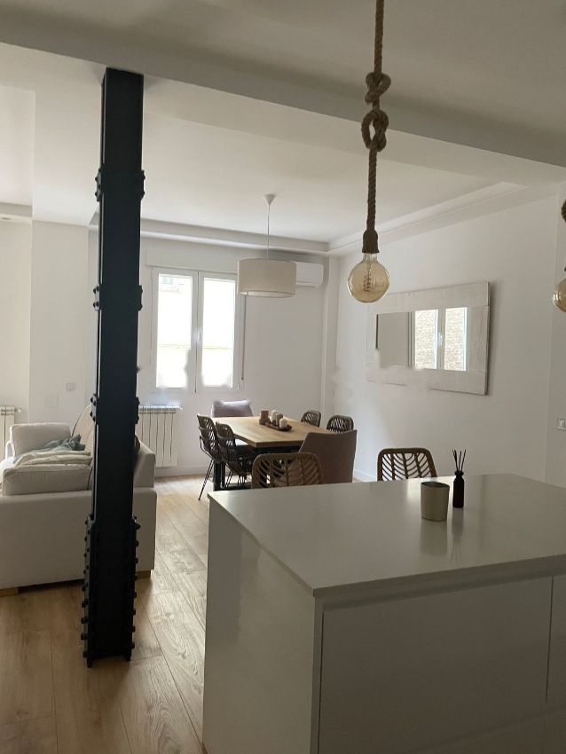 Se vende piso en Avenida de la Reina Victoria recién reformado de 105 metros cuadrados. El inmueble consta de dos habitaciones con armarios empotrados y dos baños completos, uno de ellos en suite que cuenta con ducha y bañera de diseño. Armario empotrado también en el pasillo. Dispone de un cuarto de lavado independiente con lavadora, secadora y extractor. Originalmente tenía tres habitaciones, una de ellas incorporada al salón por lo que es muy sencillo hacer una tercera habitación adicional.