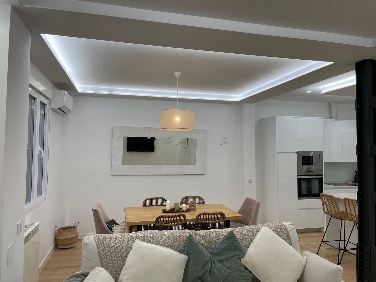 Cuenta con cocina americana con isla totalmente equipa, balcón y aire acondicionado tanto en el salón como en la habitación principal, así como con calefacción central. Todas las habitaciones y baños tienen ventana.