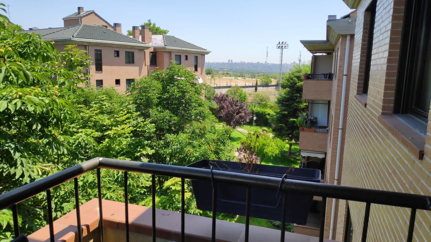 Situado en la planta superior del edificio, las ventanas dan al jardín interior de la urbanización, con agradables vistas a Madrid, con un entorno muy tranquilo.
