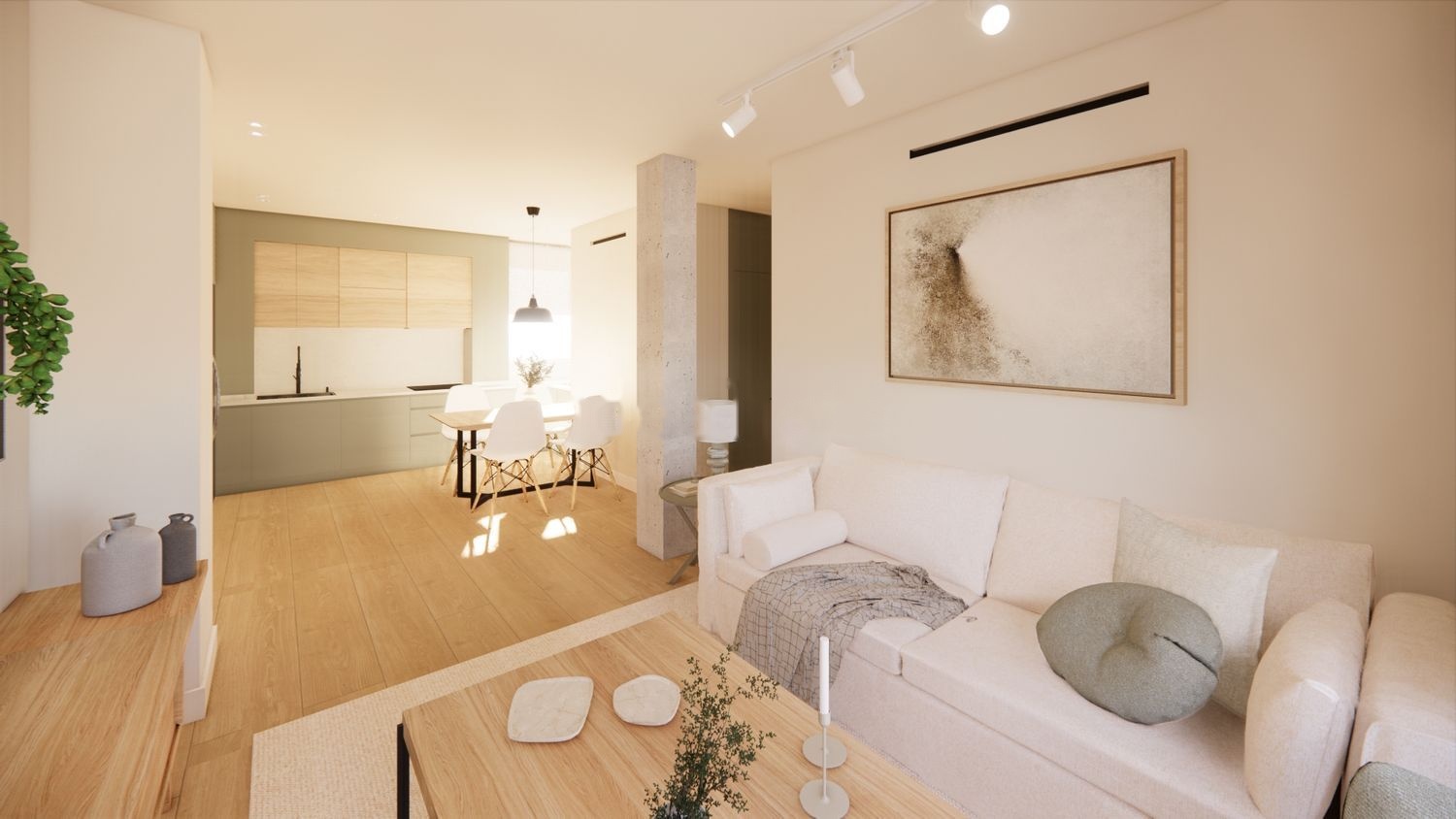 Salón Abierto con Cocina abierta: Un concepto moderno y abierto que ofrece un espacio funcional y estético, ideal para disfrutar de tus actividades diarias y recibir a tus invitados.