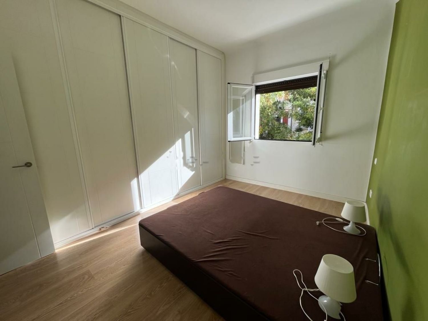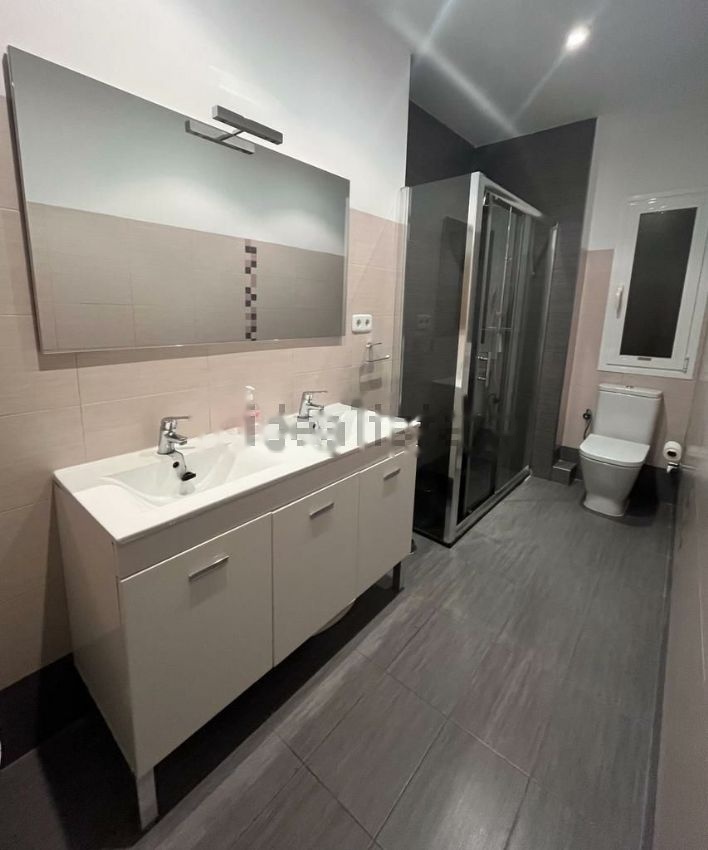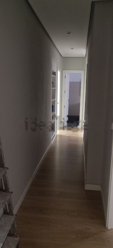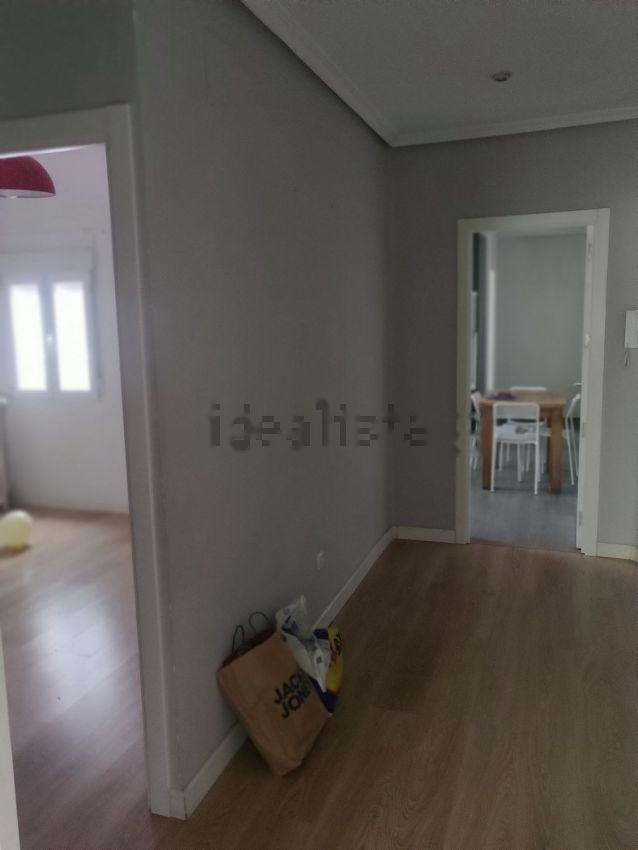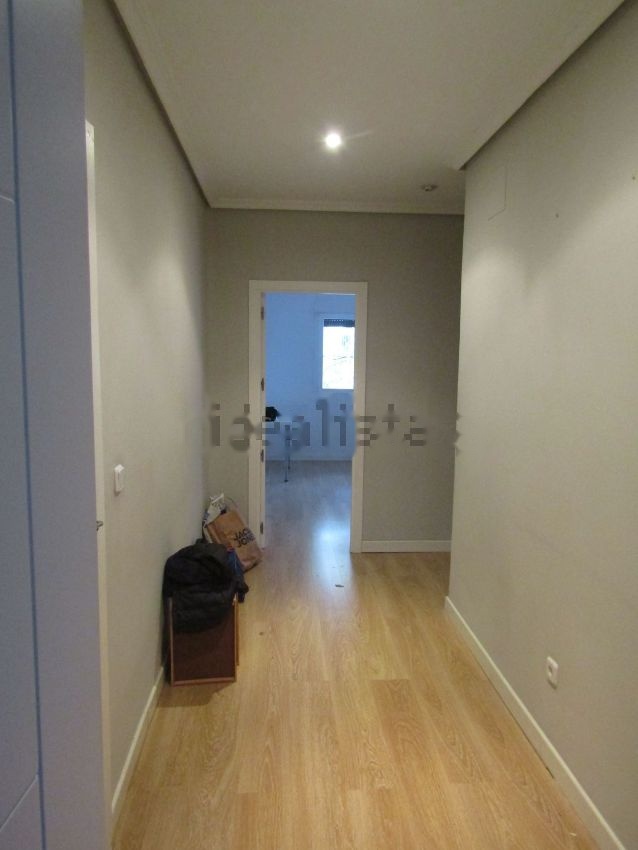 Piso reformado. Hall de entrada, amplio salón exterior de 23m2, tres habitaciones, la principal exterior y las otras dos a un patio interior, un baño completo con plato de ducha, otro aseo (antes con ducha pero se quitó al reformarlo), cocina amplia con espacio para poner una mesa en el centro. Puertas blancas lacadas, suelos de tarima, pintura lisa en toda la vivienda.