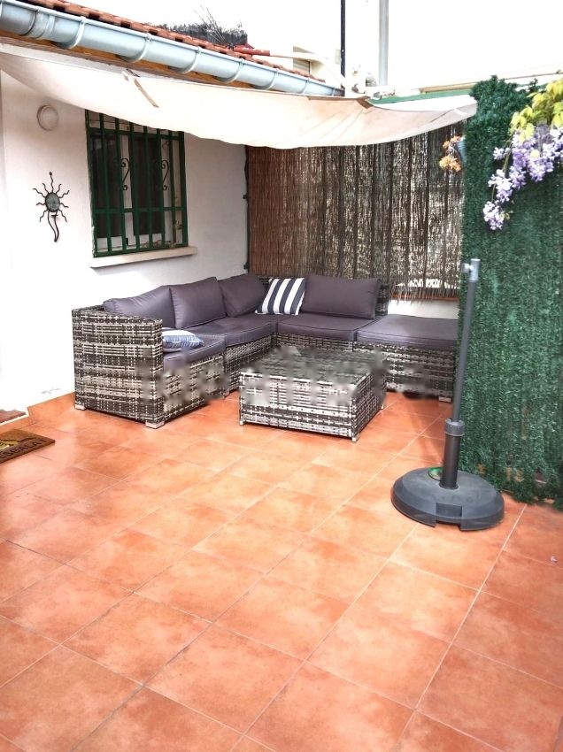 Abstenerse Agencias. Se vende luminoso piso exterior (55m) con terraza (20m). Listo para entrar a vivir. Dispone de una amplia habitación, salón cocina con barra americana y baño completo, todo en una única planta, y con 2 aparatos de aire acondicionado. Tejado a 2 aguas con techos muy altos. Muy cercano al metro Estrecho (línea 1).
