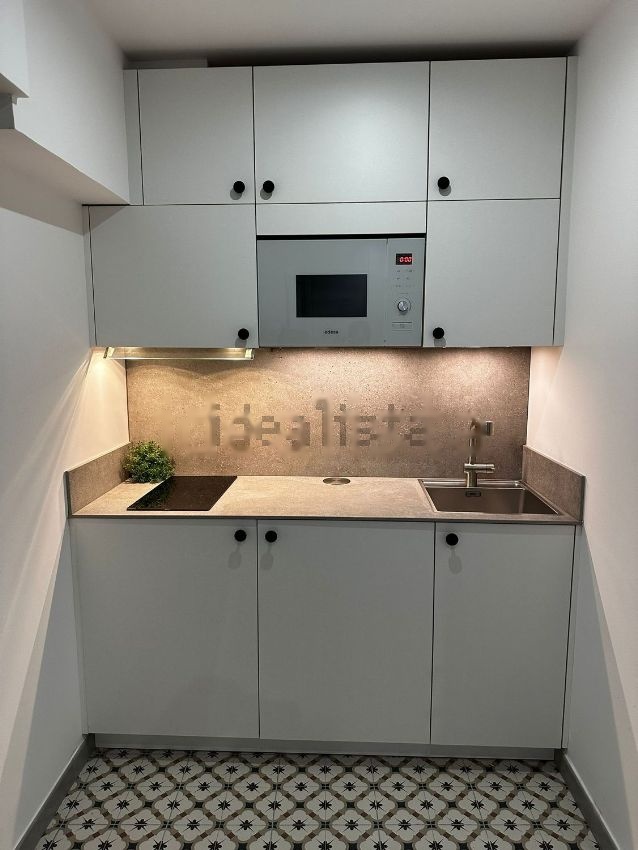 Cocina completamente amueblada. Nevera, placa, horno y microondas.