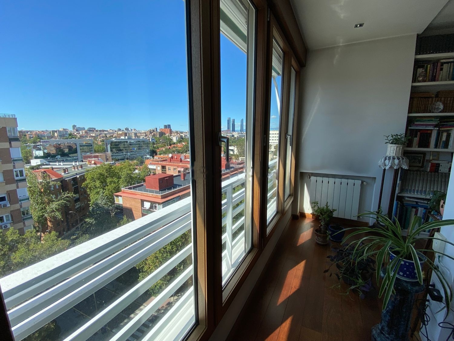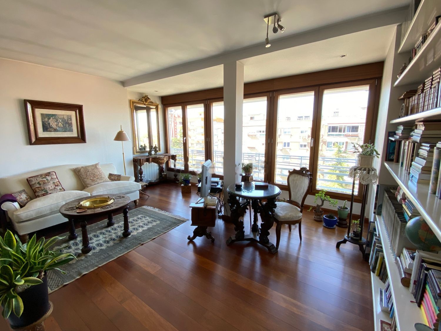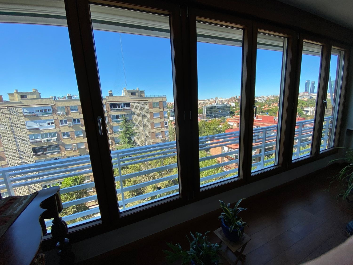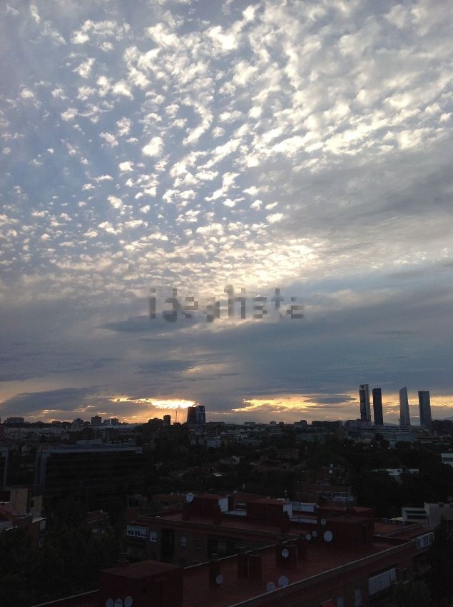 Amplio salón-comedor con grandes ventanales para disfrutar de los sorprendentes cielos de Madrid.