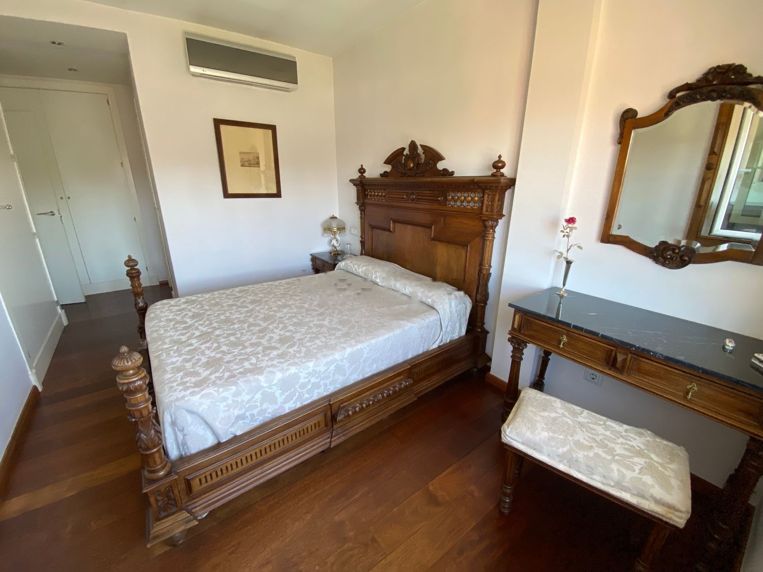 Además, la vivienda dispone de 3 aparatos, en salón y dormitorios, de bomba de calor / aire acondicionado.
