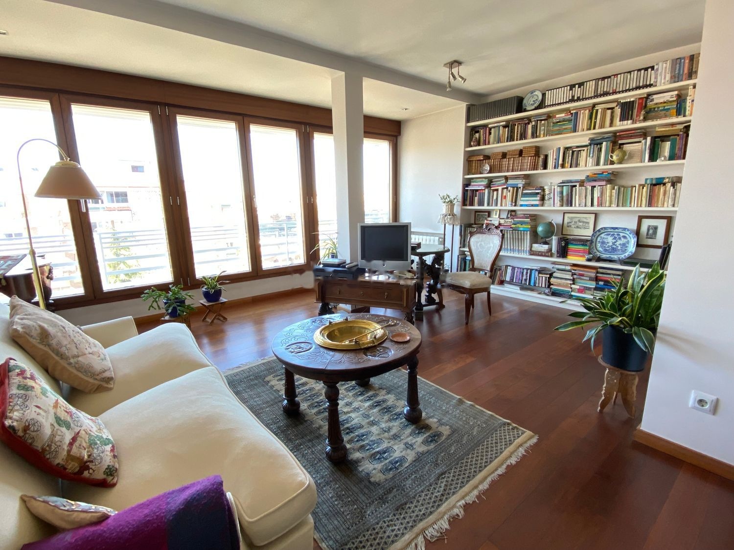 Elegante suelo de madera merbau con tarima Junkers maciza de 2 cm.