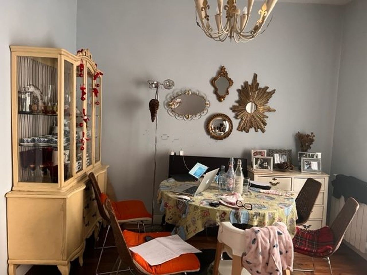 El suelo es de tarima flotante de cerezo en toda la vivienda excepto cocina y cuarto de baño que son cerámicos.