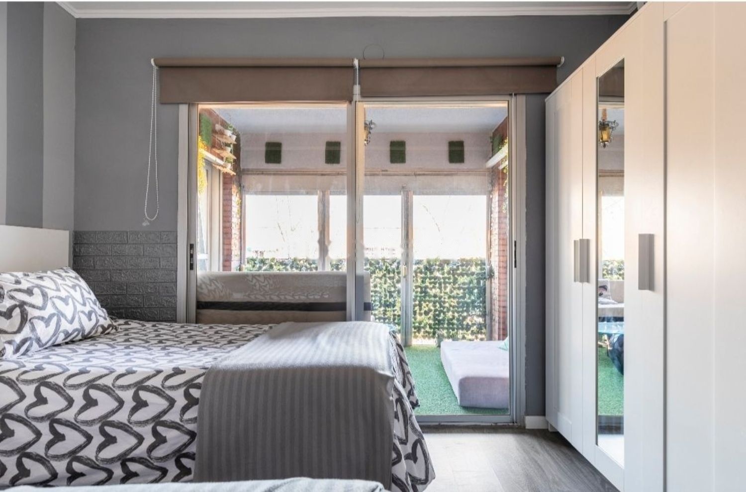 5 habitaciones de las cuales 4 dobles y una individual ésta última con pequeño vestidor, 3 dormitorios dan a la terraza, una da a calle privada y la individual da a un patio. la terraza mide 6m2 que da a la calle principal donde puedes disfrutar de tardes de verano.