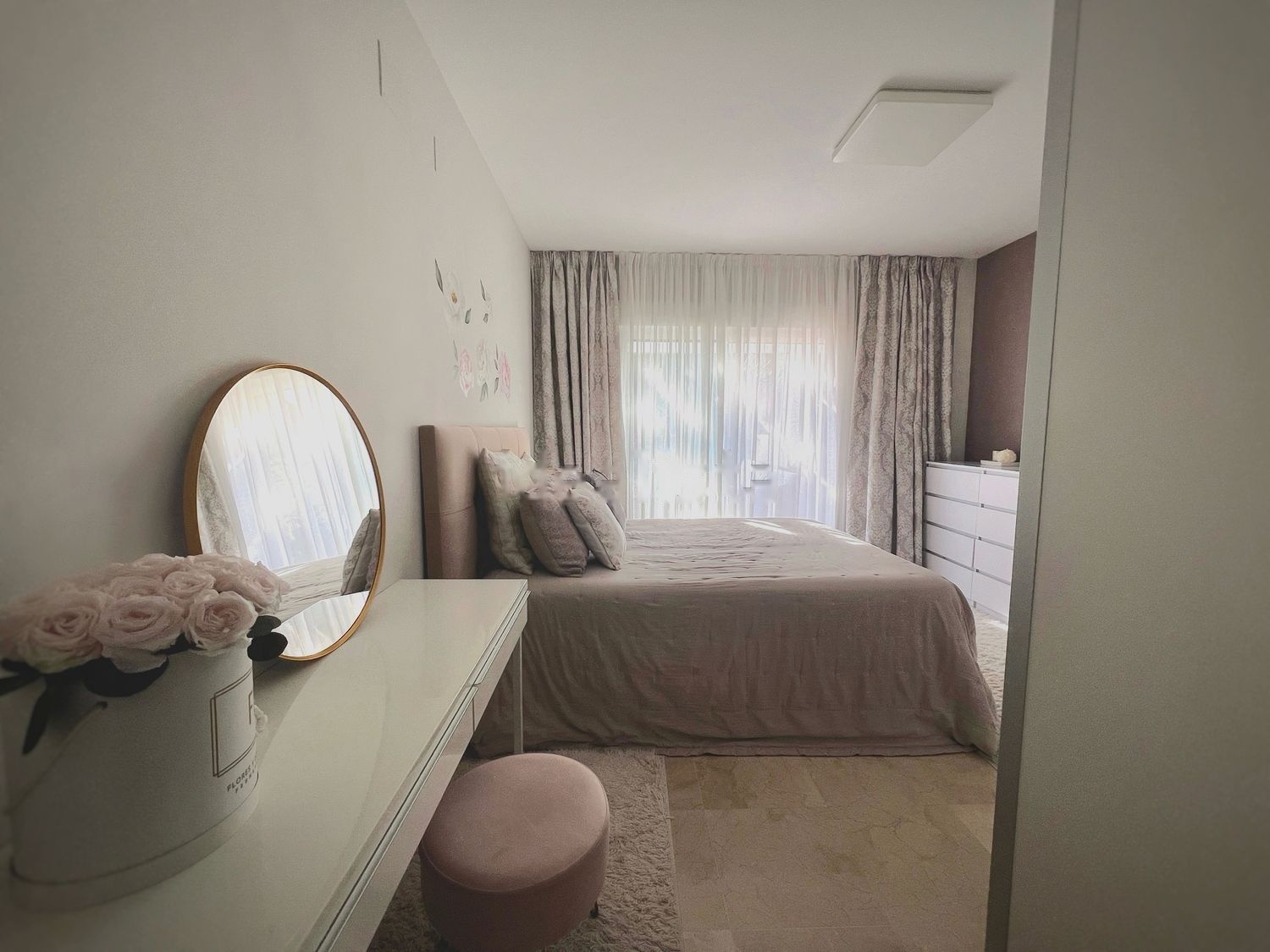 Soleado y tranquilo apartamento de tres dormitorios, en una magnífica urbanización con vistas al mar, en plena Milla de Oro, cerca de Sierra Blanca, a cinco minutos de Puente Romano, situado entre Marbella centro y Puerto Banús. Complejo vigilado 24/7, con familias internacionales, cuatro piscinas públicas (1 piscina tranquila, 2 para niños, 1 piscina climatizada en invierno), restaurante de verano, gimnasio, pequeña sauna finlandesa, jacuzzi, 2 pistas de pádel, 2 pistas de tenis, mini parque infantil, mini ciudad dentro de la urbanización. 1 plaza de garaje grande y trastero grande incluidos en el precio. 3 dormitorios y 3 baños, tercer piso de cuatro, terraza de 17m, soleado todo el año, urbanización de lujo - cerrada y estricta seguridad, cámaras, el mar es visible desde la terraza. Buen estado y la demanda de ubicación y apartamento es alta. Urbanización perfecta y ambiente acogedor dentro del apartamento. El piso salió a la venta recientemente.