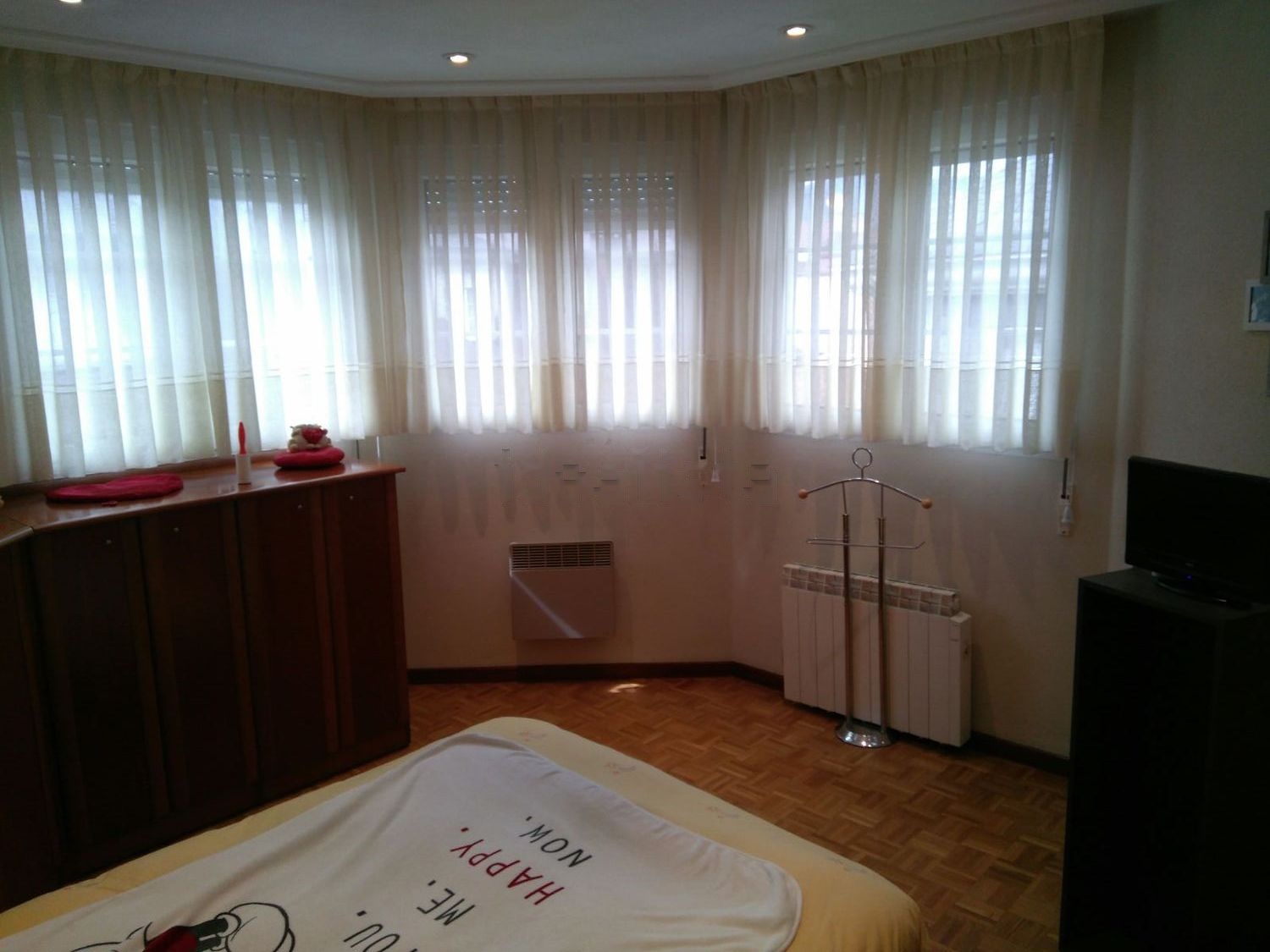 Techos de escayola con oculos y moldura. Suelo de parquet. Armario grande (ropero despensero)bajo escalera con puertas de espejo. Cocina amueblada completa y electrodomesticos de 15. m. Salon de 25m. con tres grandes puertas balconeras. Mucha luz y con vistas sin edificios enfrente. 2 baños completos uno con ventana. Cerca de ambulatorio nuevo y Universidad. Prácticamente a estrenar por no haber vivido en el. Amueblado completo y con cortinas en todas las ventanas.