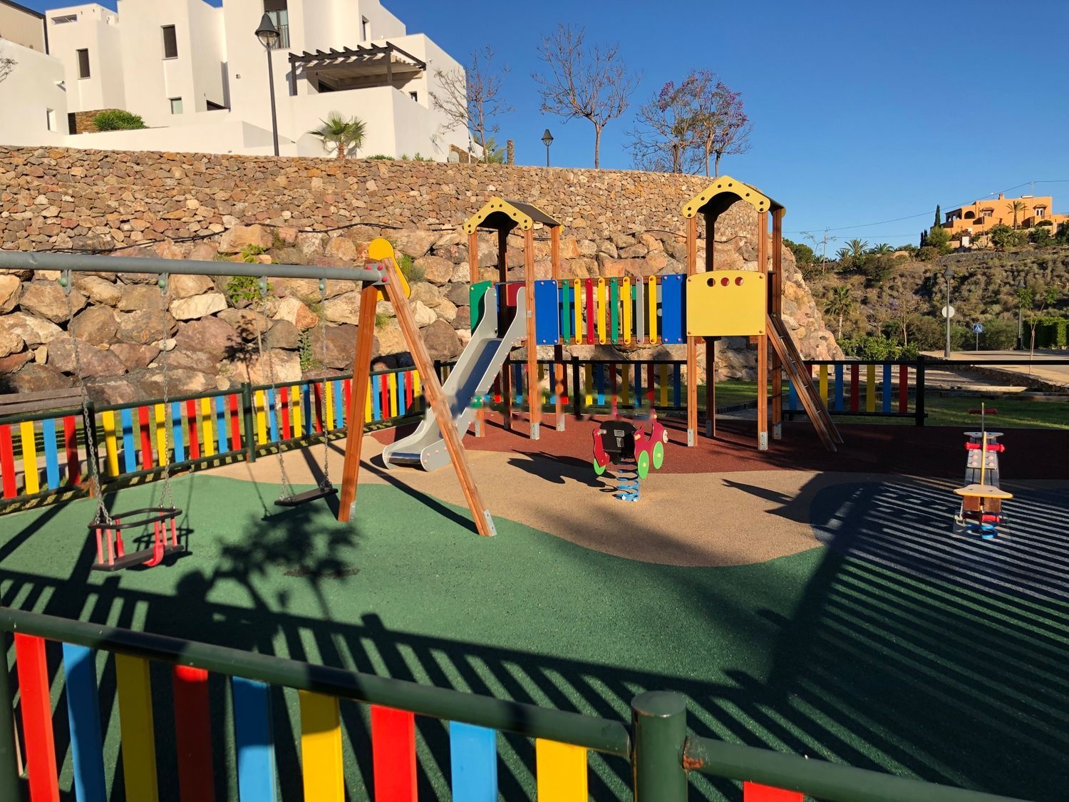 La urbanización cuenta con acceso vigilado (barrera y agentes de seguridad las 24h), parking privado y cubierto. Dos piscinas comunitarias. Zonas ajardinadas, área de juegos infantil, aparatos de gimnasia y paseos.