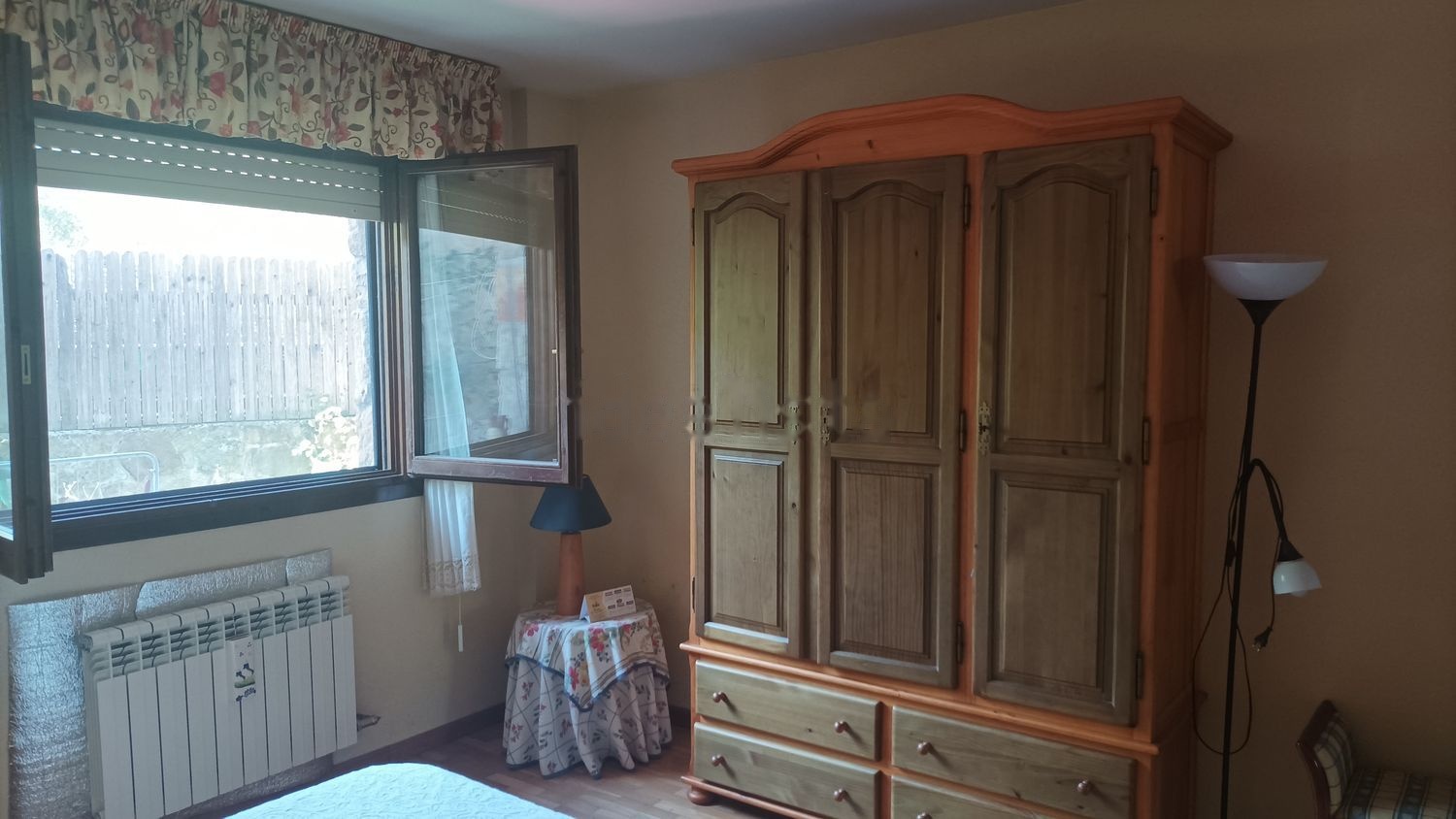 Suelo de parquet, doble ventana imitación madera, y un precioso jardín de hierba natural, con rosales, lavandas y frambuesos.