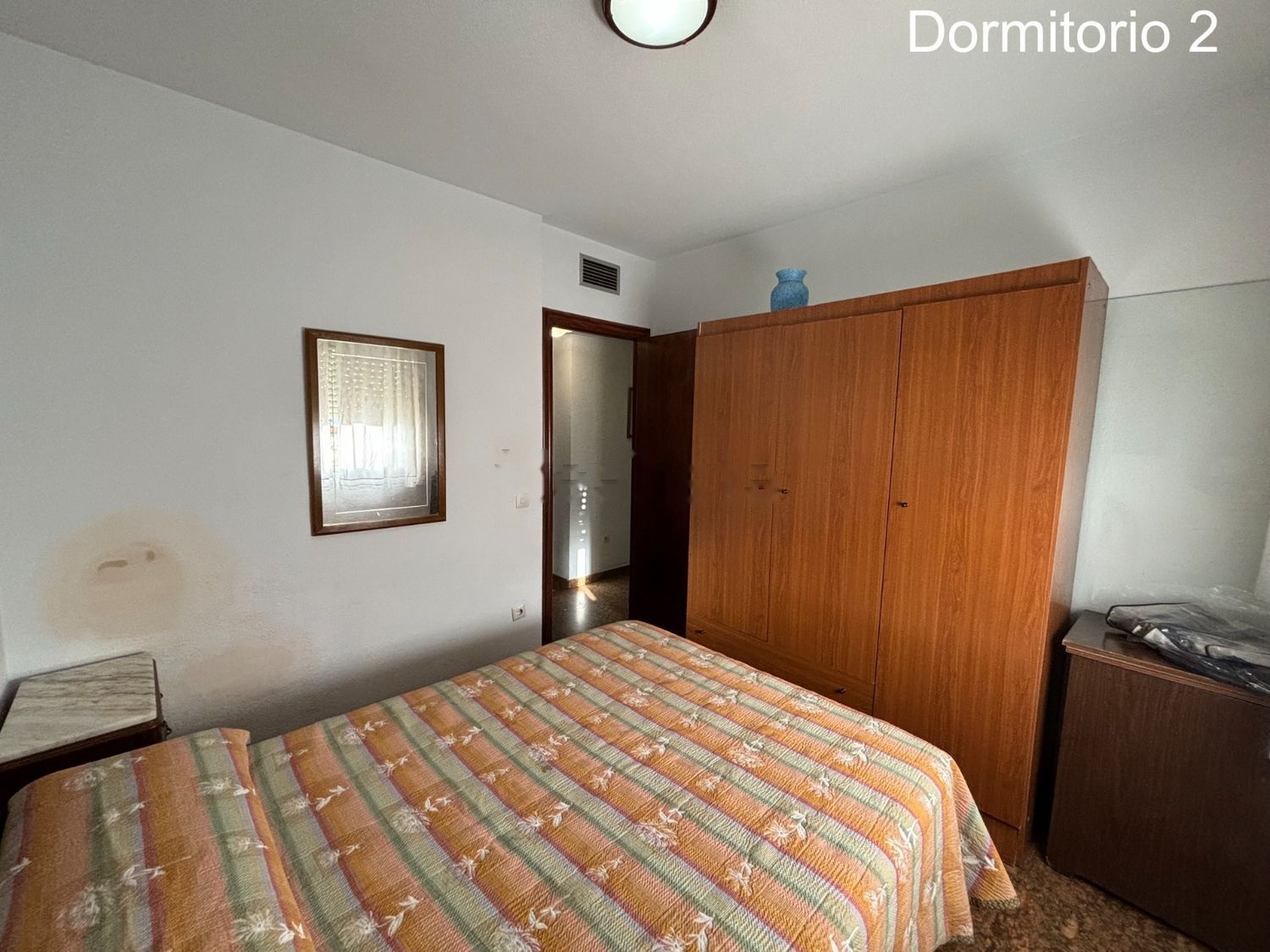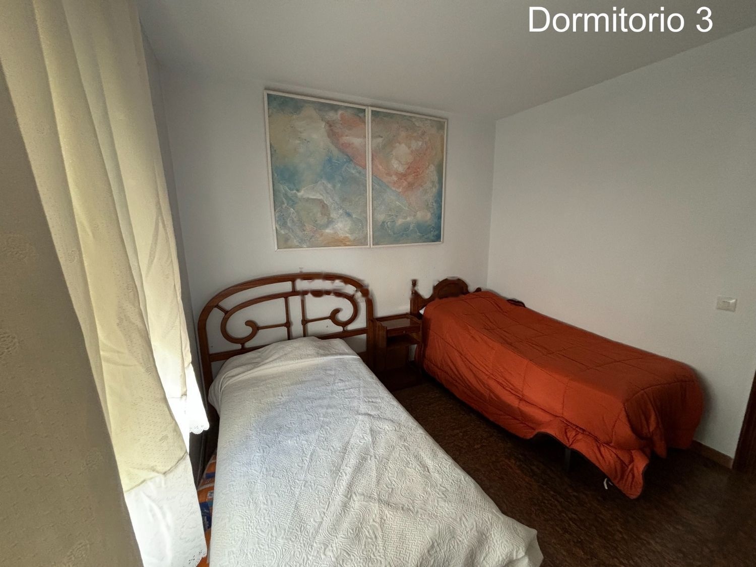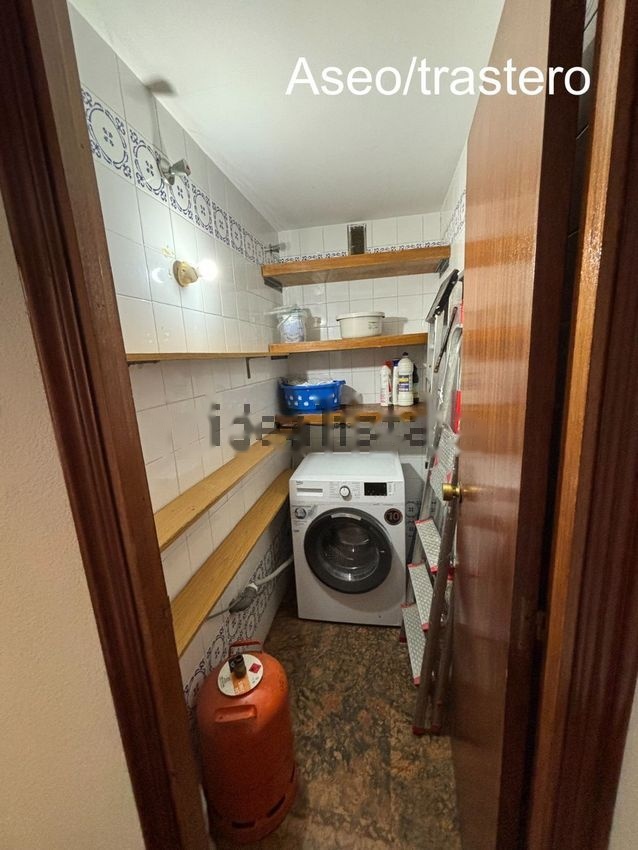 Tiene tres dormitorios, baño, cocina, gran salón y un aseo que se ha convertido en despensa donde se ha instalado la lavadora.