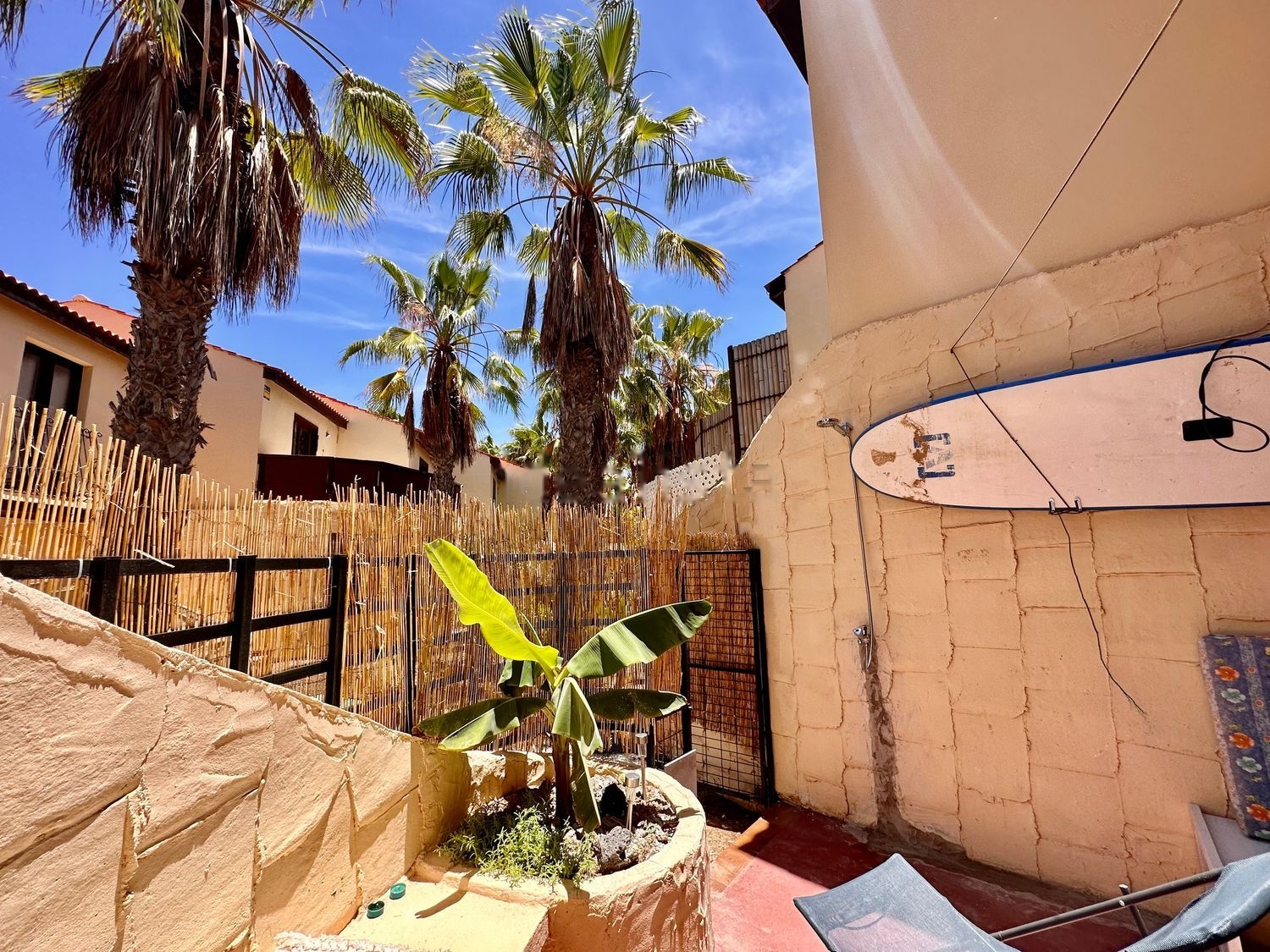 Casa adosada / Apartamento dúplex, entrada independiente en Residencia muy cuidada y limpia con palmeras y piscina. Altos muros alrededor de toda la residencia que son excelentes para la protección contra el viento y para la seguridad en general, excelentes personas que forman parte de ella, una hermosa comunidad multiétnica y bien administrada. La casa verdaderamente lo tiene todo y ha sido completamente renovada desde el sistema eléctrico hasta el de plomería, lista para ser habitada llave en mano. La sensación que te ofrece este lugar es increíblemente placentera y no tiene precio, te sugiero que pases unos días en uno de los apartamentos que alquilan a los turistas para hacerte una idea de cómo es aquí. Aparcamiento exterior muy cómodo y siempre gratuito, el servicio de basura también es muy cómodo. La ubicación es excelente, a 20 minutos del aeropuerto y 15 de Corralejo ya 7 minutos de la playa de las dunas. en parte de la residencia hay un campo de fútbol, tenis y baloncesto gratis, un bar y una pizzería para llevar, el supermercado más cercano es un hiper dino a 9 minutos en coche, de lo contrario el corralejo mercadona a 17 minutos, el minimarket h24 es en puerto del rosario a 16 minutos como es el hospital.