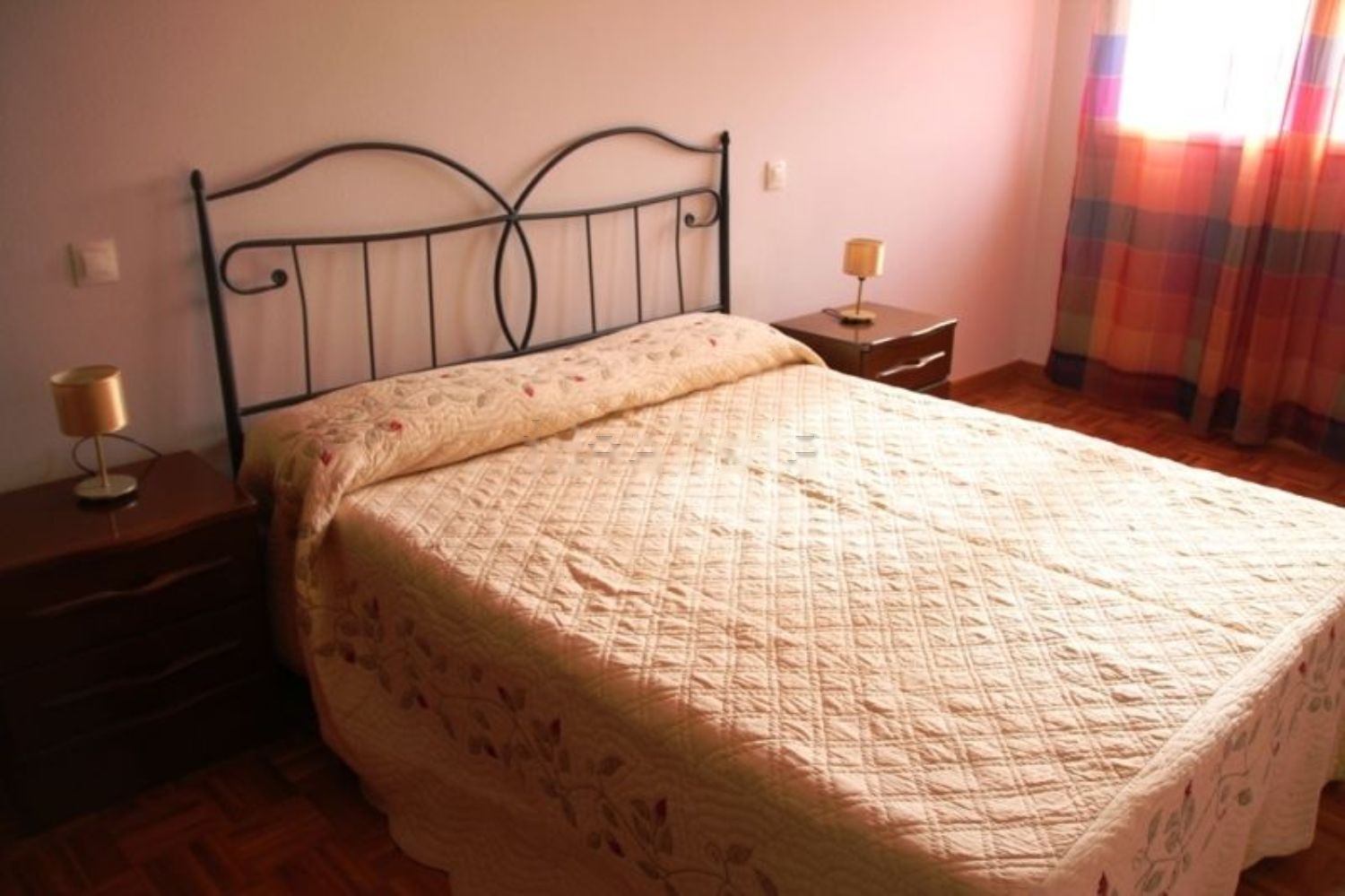 El apartamento consta de un distribuidor desde el que se accede al salón-comedor, a los dos dormitorios y al baño. A la cocina se accede por el comedor y está separada de él por una puerta corredera. La cocina está completamente amueblada y dispone de nevera, lavadora, vitrocerámica, campana extractora y microondas. El suelo es de parqué de roble (a excepción de la cocina y el baño que es de gres) y la calefacción individual de gas por suelo radiante (caldera Vaillant). El salón comedor y los dos dormitorios son exteriores con vistas al canal. El baño es interior y la cocina da a un patio donde está instalado el tendedero. Las ventanas son oscilo-batientes tipo climalit. El piso está recién pintado y el parqué barnizado. Los servicios de agua, luz y gas están dados de alta. Se trata de una vivienda muy soleada y cálida, en pleno campo y a la vez muy cerca del centro al que se llega en 10 minutos andando. En el barrio hay dos parques infantiles, supermercado y parada de autobús. Se encuentra en un paraje natural frente al Canal de Castilla. El inmueble no tiene barreras arquitectónicas, el portal es de granito y las luces se encienden automáticamente al detectar la presencia. El ascensor baja hasta el parking donde se dispone de una plaza de garaje y del trastero. Los muebles que aparecen en las fotografías se dejan en el piso. También se puede alquilar, el precio del alquiler con el garaje incluido sería de 430 euros al mes. Abstenerse inmobiliarias.