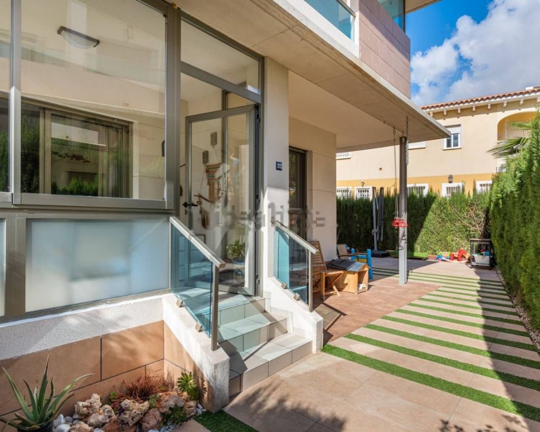 Piso tipo Bungalow en Residencial privado Gran Sol de estilo moderno ubicado en municipio Rojales, urbanización Doña Pepa, Ciudad Quesada, con 4 piscinas comunitarias (una de las piscinas con el agua salada), amplio parking y zonas verdes. Apartamento en planta baja de 2 dormitorios, cocina sala y 2 baños, un amplio jardín.