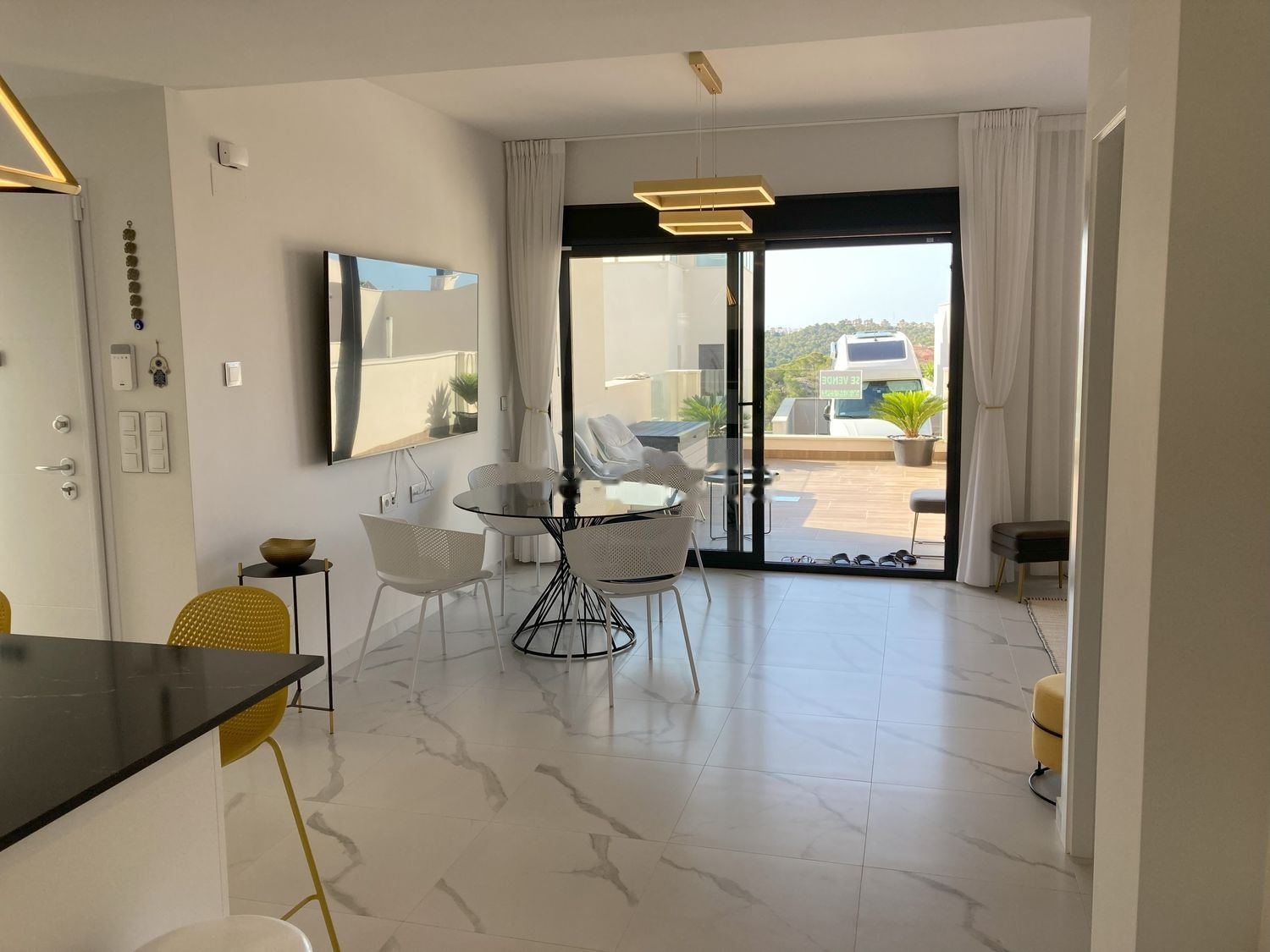 Moderno, espacioso apartamento en planta baja, en excelentes condiciones. Cocina totalmente equipada con sobre de mármol, cortinas, persianas eléctricas, lámparas, iluminación led en terrazas delantera y trasera. Todo está incluido en el precio. La terraza delantera es de 20 m2, la terraza trasera es de 74 m2. (También podemos proporcionarlo completamente amueblado, por lo que solo necesita mudarse. ) El barrio es sumamente tranquilo, excelente para el descanso. Impresionante vista del Lago Rosa. Tiendas, supermercados, farmacias a tan solo 5 minutos en coche, centro comercial La Zenia y la playa a 15 minutos en coche.