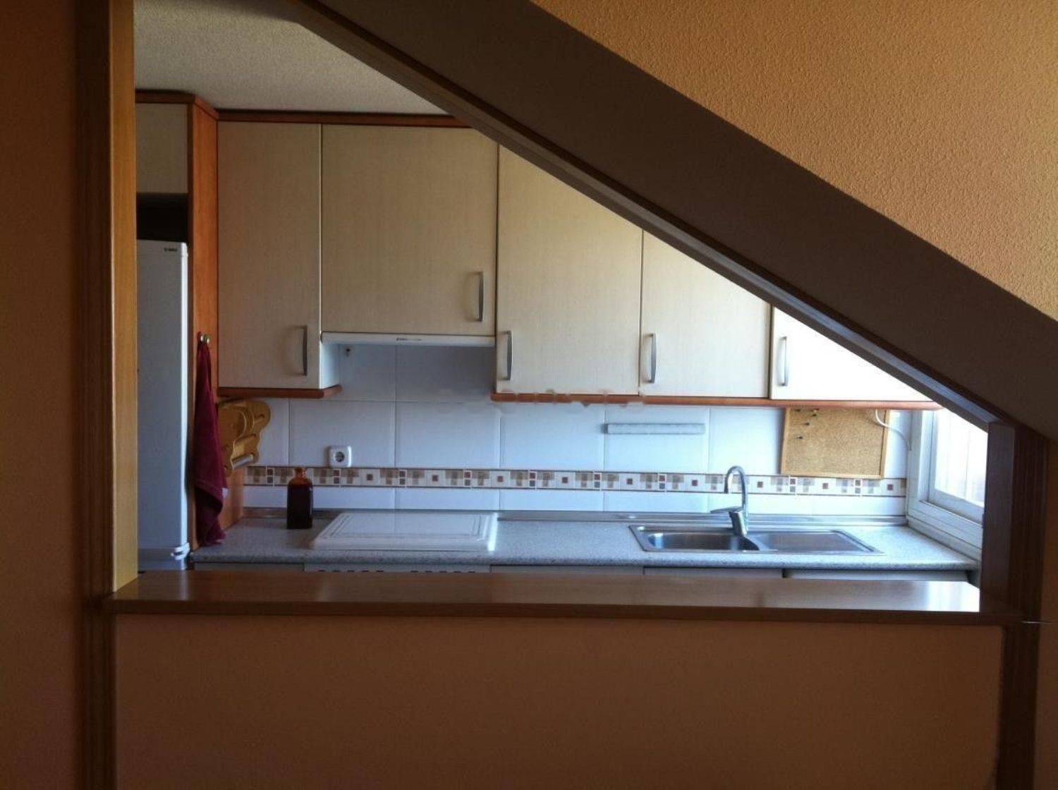 Cocina abierta al salón, luminosa, con ventana y barra.
