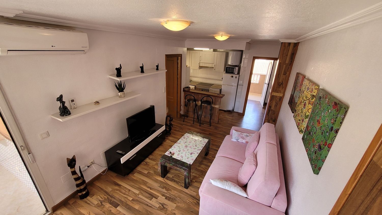 Es un apartamento que consta de un salón comedor, cocina, aseo, habitación de matrimonio y una pequeña terraza, en total 45m²: