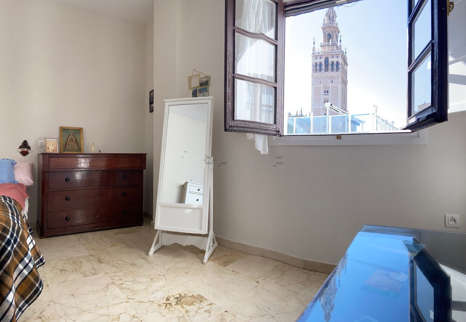 Céntrico piso, muy luminoso con vistas a la giralda. Consta de 4 habitaciones, 2 baños, amplio salón-comedor, cocina, azotea comunitaria y plaza de garaje para coche grande. Muy buenas calidades, suelo de mármol, puerta blindada, armarios empotrados y ascensor amplio y nuevo. En pleno centro, a 70 metros de la catedral, con todas las comodidades, que también es una magnífica inversión como piso turístico. Sin intermediarios, por favor, inmobiliarias absténganse.