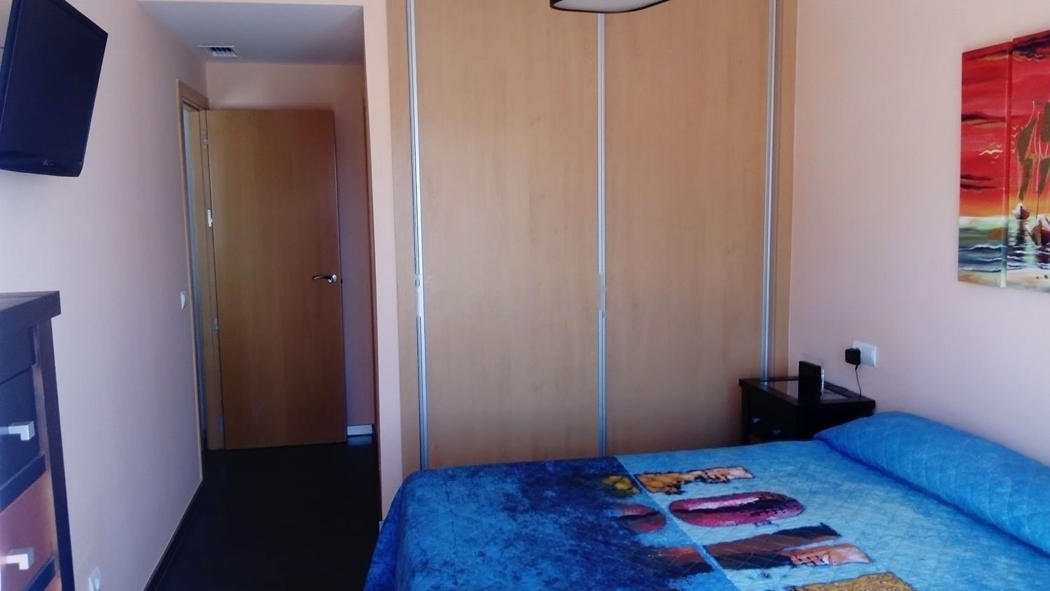 Tiene unos 75 m2 útiles, capacidad para 4 ó 5 personas, dos dormitorios, con dos camas de 90, una de 150 y un colchón de 90 en el interior de un canapé, dos cuartos de baño, dos terrazas lavadero cubiertas, salón, cocina con todo tipo de menaje (tostadora, exprimidor, sartenes, cacerolas, vajilla, cubertería, licuadora, cafetera, etc. )