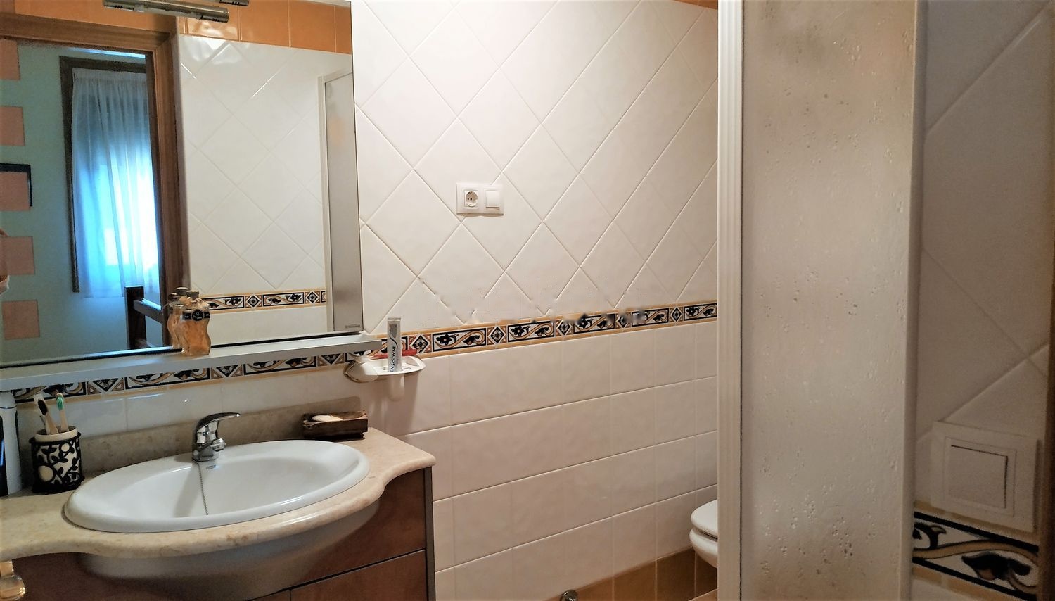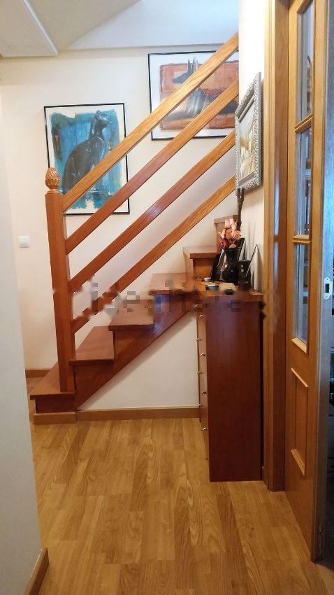 Cocina amueblada en color blanco con balcón exterior de doble hoja. El baño completo dispone de plato de ducha de 110x80 con mampara, y se ubica en la planta superior. El aseo está ubicado en la planta baja. Salón con balcón exterior de doble hoja que ocupa toda la pared exterior. Escalera de subida al piso superior con escalones y barandilla de madera color cerezo barnizada. Habitación principal con armario empotrado y ventana de doble hoja al exterior.